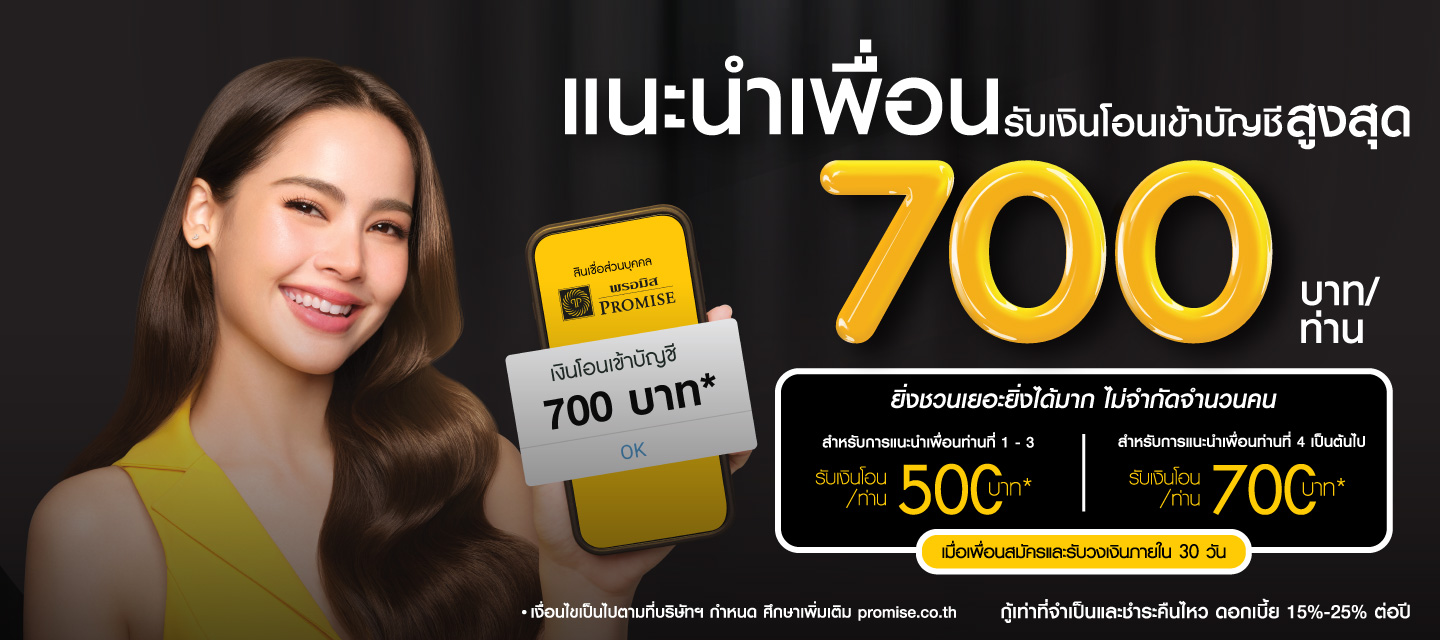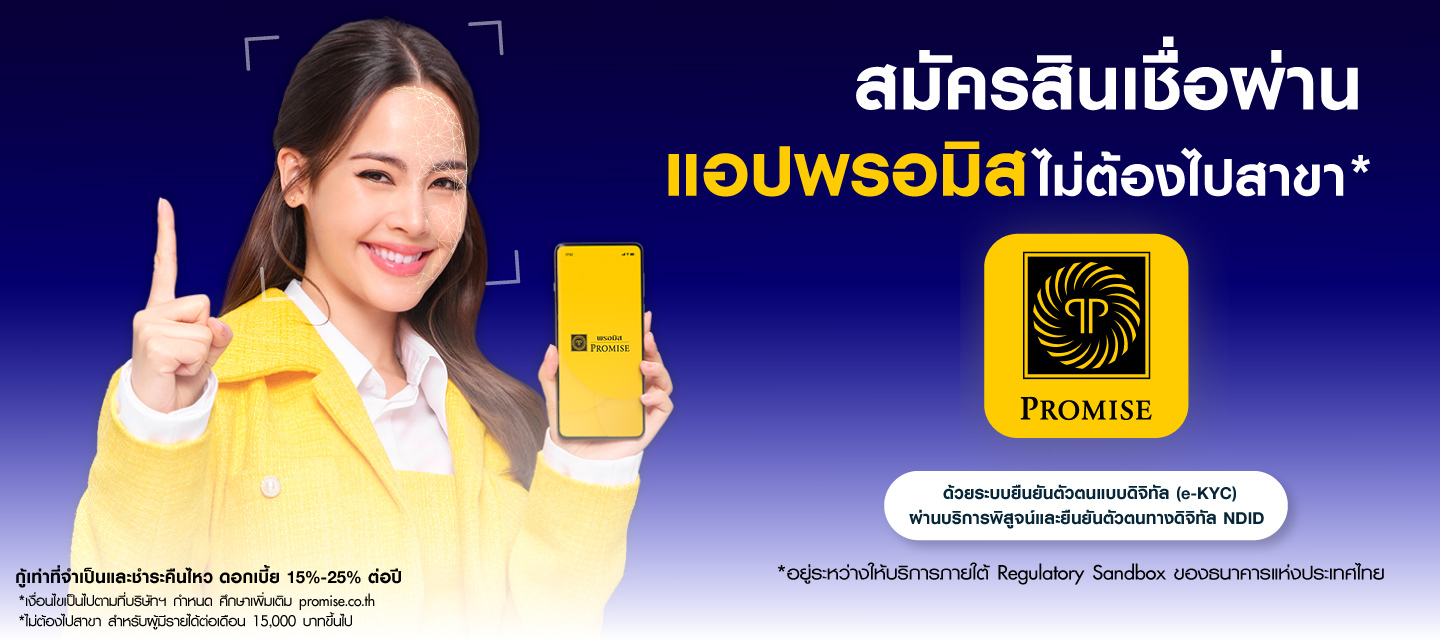 *** ตรวจสอบพื้นที่เขตให้บริการได้ที่ https://www.promise.co.th/branch.html หรือสอบถามเพิ่มเติมที่ Call Center 1751 ได้ตั้งแต่วันจันทร์-ศุกร์ได้ตั้งแต่เวลา 9.00-19.00 น. วันเสาร์-อาทิตย์และวันหยุดนักขัตฤกษ์ 9.00-18.00 น.